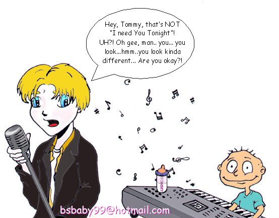 Aww, isn't Tommy cute? Besides being our baby, he's one of the BEST keyboardists in the whole world! What? Shut up, Flávia! Stop calling me @$$ kisser! YOU know the guy's great! Sorry, folks, that was my sister... Well, as I was saying, maybe you didn't know Tommy has been in a movie already *The Rugrats one!* , but I've found out this little secret about Mr.Tommy Smith. Yo,Tom, I had no choice, man: the Boys said they wouldn't tour Brazil if I didn't tell them! *lol* - And just thought about sharing it with everyone out there! Especially the guys from the chatroom! Hey PEEPS! *waving* You are all my sisters!!! *lol huge family huh?* Luv you all forever and ever. Sorry to annoy you at times, but that's just what sisters are all about, right? Keep on the good-funny-weird-cool-talk! And remember: NO WHISPERING to the Band members in DA ROOM! From now on you'll be arrested if you do that! ;o)