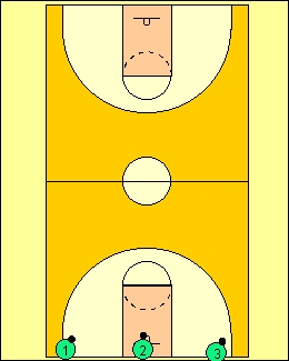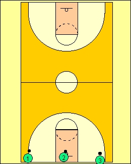 This is done with a fast speed dribble to the free throw line[going forward],when the players reach it,they dribble backwards to the baseline they started from,and then proceed to half court line with a forward speed dribble and then bacwarks to the original baseline.Do this untill they have dribbled to the far free throw and baseline and back[backwards]. The dribble must be maintained during the whole drill,never stopping. |