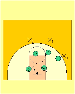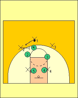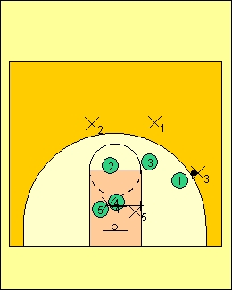 In frame 7,the 3 has the ball on the wing,looking for a pass to the low post.,Now I are going to show you the 4 coming across to set the screen for the 5 ..I call this a "cross screen" because he cross the lane to set it.