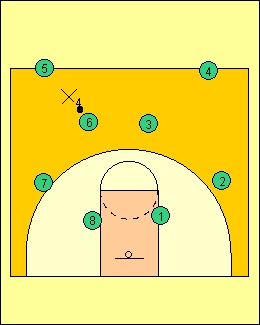 see full court closeout drill for a explaination of a closeout if need be. do same as full court,but only use 1/2 court. |