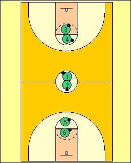 place players as shown.Have them start back to back.Object is to stay within circle,protect ball with body and dribble ball,while trying to knock other players ball out.Have a " playoff" down to the last one to see who wins.