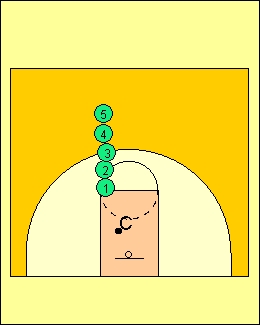 The kids love this drill. Line players up at the free throw line.The coach tosses ball off backboard.The first player in line runs in and tips ball back up off backboard,making sure it don`t hit the floor.The next player hustles in while the first player runs to back of line and the ball is still in the air and does the same.Don`t let the ball hit the court. Have them do 25 right before they quit. |