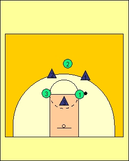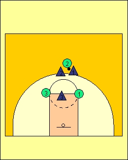 The Triangle Trapping Drill Linn Dunn with Perdue uses this with her college girls.It`s a lot of fun and the kids love it. Several rules to this. 1-Offense cannot dribble 2-offense cannot move,must keep in place 3-start with the defense NOT stealing ball 4-When the defense closes out on the ball,they must rush to the ball with hands up 5-while defense is pressuring the ballhandler,they must yell"ball ball ball".Make them do this,they`ll love the yelling part after a while. 6-The lone defender must position her/him self in middle of the 2 offensive players,it helps to point with hands to each offensive player and be ready to rush to close out in any direction. |