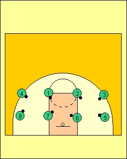 Line your players up in as many lines as you need.Give each player a ball.Players keep feet and knees together at all times.The player passes the ball around his/her ankle area [around both legs] as fast as they can.They then move up to their knee area,while continuing passing the ball around their legs. After that comes the waist area.Start at the bottom and work your way up or vice versa. Change directions with the pass after completing the first set. |