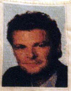 Here is Michelle Loo's lastest project. She took it to the Gerthering 5 to have Ger sign it. The picture was taken at the 1999 Tucson Classics right after she presented him with his birthday gift. The writing on the mat says: "Dear Michelle, Thank you, Love Ger". Lucky girl! {g}