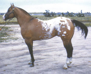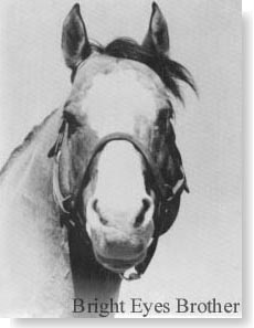 Bright Eyes Brother Bright Eyes Brother Foaled on the Maddon Ranch in New Mexico in 1950, Bright Eyes Brother was indisputably an Appaloosa. The colt’s sire was the AQHA registered Billy Maddon, so it was deduced that the colt’s color had come from none other than his dam, the unregistered Plaudette. Plaudette was by the Thoroughbred stallion King Plaudit, and was a sprint and match race mare. As a broodmare, it was clear that she passed on her running abilities to her offspring when she produced the three time AQHA champion running mare Maddon’s Bright Eyes. But despite having foaled AQHA registered horses in the past, Plaudette obviously carried some Appaloosa in her blood, and this was evidenced when foaled the attractive buckskin blanketed colt that would come to be known as Bright Eyes Brother. As a two year old, Bright Eyes Brother – then called Frosty – was sold to Wiley Donaldson, who used the colt as a rodeo horse; he found that Frosty was very adept around cattle, especially in roping events. Because Donaldson and his family treated the horse more as a pet than anything else, during Frosty’s five years with Donaldson he was rarely used as a sire – and while he did sire five foals during that time, three were from stock mares he covered when he got loose at a rodeo. While the buckskin stallion was busy with rodeos, a Colorado-based auctioneer had been listening to stories about the horse for years. That auctioneer, whose name would become forever intertwined with that of Bright Eyes Brother, was Cecil Dobbin. Dobbin had seen prices for Appaloosas in auctions soar and decided that the well-bred stallion would make a good herd sire to begin his own breeding program. Dobbin kept his ear to the ground for two years before he finally found Frosty on Wiley Donaldson’s ranch. Dobbin first offered Donaldson any rodeo horse on the circuit that was for sale in exchange for Frosty, but Donaldson refused. Not to be discouraged, Dobbin returned to Donaldson's ranch with $10,000 from his savings account, as well another $10,000 loaned from a friend, and eventually enticed Donaldson to sell the stallion without having to dip into the second $10,000. A wave of guilt swept Dobbin as he watched Donaldson's young daughter say a teary goodbye to Frosty as she fed him gumdrops out of her hand; but the deal had been made, and Dobbin left with the stallion. Returning to Colorado with Frosty, Dobbin made a stop at a phone to call his friend Dick Spencer and boast about his newest acquisition. When Spencer found out that the horse was a half brother to the famous Maddon’s Bright Eyes, he jokingly told Dobbin to call the horse Bright Eye’s Brother, since “that’s what you're going to be telling everyone” – and the name stuck. In Colorado, Dobbin registered the horse with the Appaloosa Horse Club and promptly began Bright Eyes Brothers’ show career. Most notably, the stallion competed regularly at the Denver National Western Stock Show. After winning grand champion Appaloosa stallion at the show, he was invited to show at the San Antonio Livestock Show in 1958. After his arrival, Dobbin put Bright Eyes Brothers’ pedigree on the horses’ stall for everyone to see, creating a stir among AQHA breeders, some who were amazed – others angry – that an Appaloosa could be related to their illustrious mare Maddon’s Bright Eyes. Despite the controversy, Bright Eyes Brother easily took home the 1958 grand champion Appaloosa stallion title, only to create another stir when he and Dobbin walked in the Parade of Champions - an honor usually reserved for the Quarter Horses. Throughout Bright Eyes Brother's career as a stud, Dobbin continually received offers to buy the stallion. Dobbin even received a $50,000 offer for half interest in the stallion before any of his foals had been born, but Dobbin always refused, even turning down an offer from legendary breeder Hank Weiscamp. Dobbin also rarely sold the foals Bright Eyes Brother sired until they were yearlings, giving him a chance to appraise the product of his breeding program. As a sire, Bright Eyes Brother produced 138 registered offspring. Cecil Dobbin was a believer in quality not quantity, and usually bred the horse to fewer than 20 mares each breeding season. Dobbin handpicked the mares that he bred Bright Eyes Brother to, mostly choosing mares who were from Coke Roberds and Mavis Peavy bloodlines. Dobbin rarely bred the stallion to outside mares, preferring to instead to sell the Bright Eyes Brother offspring his ranch produced. One notable exception to this rule was Bright Eyes Brother's breedings to Lane Hudson's mare Peggy's Delight, producing the famed Mighty Bright and his subsequent full siblings Bright Delight, Bright Cecil, Gypsy Delight, and Barely Bright. Bright Eyes Brother sired several well known Appaloosas, including Hall of Fame stallions Mighty Bright and Bright Chip, Hall of Fame mare Bright Starlette, 1963 Appaloosa National Show grand champion mare Bright Delight, National and World champion Bright Reflection, and two time National champion Bright Tribute. Bright Eyes Brother is in turn the grandsire of the stallions Mighty Marshall, Mighty Paul, and Mighty Peavy. Bright Eyes Brother also has the distinction of being the sire with the most offspring in the Appaloosa Horse Club Hall of Fame. Bright Eyes Brother died in 1979 at the age of 29. He was inducted into the Appaloosa Horse Club Hall of Fame in 1988. Hidden Oak Ranch Home Page
