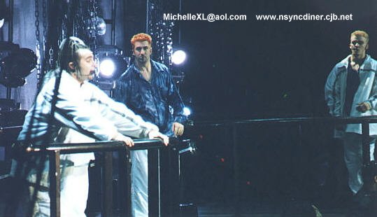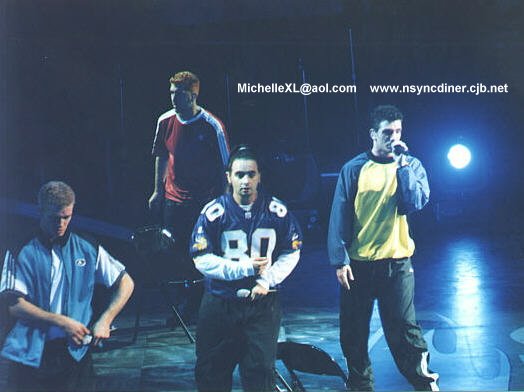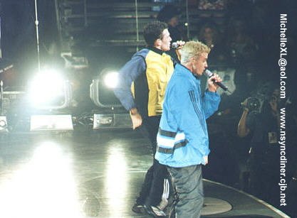 La nouvelle tournée d' 'NSYNC nommé Ain't stoppin' us now a débuté il n'y a pas très longtemps!!!! elle est VRAIMENT cool!!! et a mon GRAND regret, je ne la verrai pas...:~((((...C PAS JUSTE!!!... je vous laisse sur ces photos que j'ai trouver sur un autre site(je voulait préciser que je suis trop poche...j'aurais pas pu avoir des belles photos comme ça..)