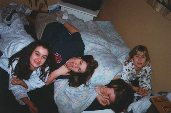 quand catherine à fait un party chez elle, on était un peu trop pour l'apartement... Alors on s'est retrouver 4 dans le lit à Cath... Bianca, caro la poule, kim et moi... CALISSE QUI FESAIT CHAUDDD!...on a passé la nuit réveillée! lolol
