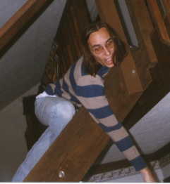 Here again is the picture of King P falling down the stairs of his house. I have learned one thing...get a haircut hippie! Of course, now his hair is short.