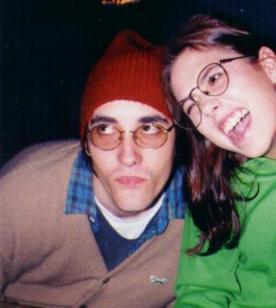 Here is yet another picture of Alex and Courtney. They are hanging out backstage. Alex looks really tired from having to play a 30 minute drum solo...long live arena rock!!!!Anyways...the words in the background were spray painted by our other photographer Shane Gettys. This picture was taken during our 1998 ANTI SUCKS! Tour. It was fun. That was where we first met Buzzo and Dale. |