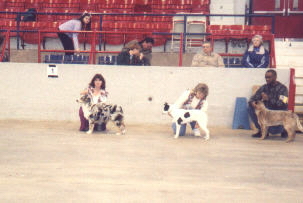 Candy is out of ASCA / AKC CH. Soundtrack's Johnny Five X ASCA CH. Zuzax's Original Soundtrack. She is pictured here in the Mighty Match Herding Group after winning BOBP at 8 months of age. Candy is showing great promise and is living up to our expectations.