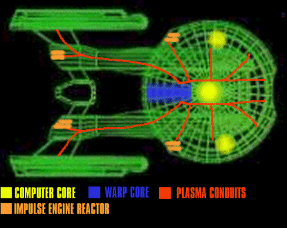 The central processing facility on Akira class ships consists of three redundant cores (Model Q-79H). The cores are shown in