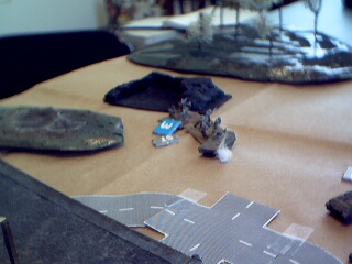 Then before the infantry were able to board, their transport was barely missed by a HEL shot. Technoid Light Walkers appeared out of the woods on the hill across the river (The picture isn't very good but you can just see the silhouettes on the ridge-line if you look closely).