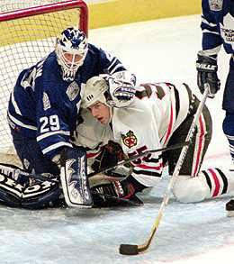 Bernie Nichols scores during first round of playoffsAmonte Scores!