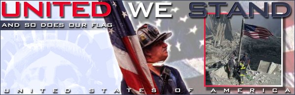 I have thought long and hard of what to say on this site about what transpired on September 11th 2001, I have cried with the Nation and the world and felt proud of where I was born and the country I served. I have wished for all the People I seen looking for lost loved ones that only one would be found, I remain ever hopefull that we can rejoice in lives being saved. Even when things get very bleak we must keep high hopes and remember where we are from and who we are as people, resiliant with a strong resolve.What we must do is press on with our lives, always remembering what had happened but not let it guide us in our daily lives. We must grasp this moment and hold on tight to it. Embrace it if you will, but never let it rule your life, use it only as a focus to end terror. If we press on and move forward it will counter everything the terrorists wished to happen. But there is one thing Bin-laden did'nt bank on was the unity it would bring not only in the United States but in the World.