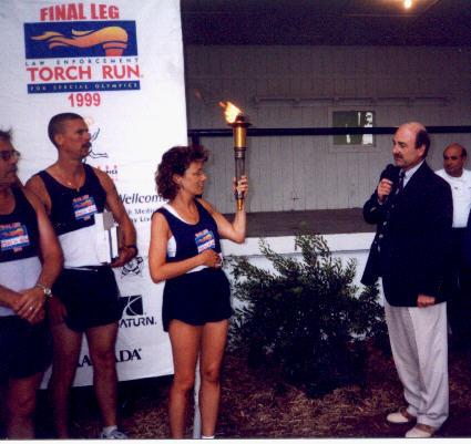 This is my dad, the Mayor of Benson, greeting the the last leg of the torch carriers. This was right before the actual games began.