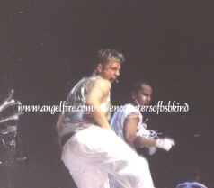 Then, it was time for "It's Gotta Be You"! I was the best! They had the new little Abercrombie Outfits on! Looking oh so good! The dancers had some cool outfits on too!! Nick has a little foot ball type jersey shirt on, A.J. has a little yellow tank top and black pants with a dragon on them, Kev has on an orange tank top and green army pants, Brian has a blue and white shirt...which he looks very cute in, and Howie had on black pants and his black hooded sweatshirt with a dragon on it. Brian had a basket ball and was playing around with it and they introduced the band and dancers of course!