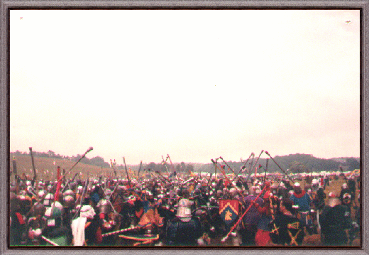 This is a picture from a battle at Pennsic 26. The Pennsic War is an annual SCA event held in Pennsylvania. Members from all over the world attend.
