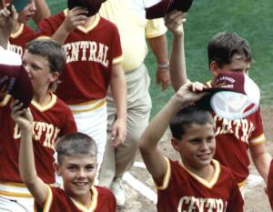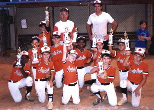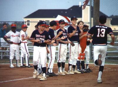 The Parade of Champions occurs at both opening and closing ceremonies. The teams are presented in all their glory, carrying individual team banners, doffing their caps to the crowd. "Its a Small World After All!" A very proud moment for a great team...the undefeated 1988 Dilworth Orioles!