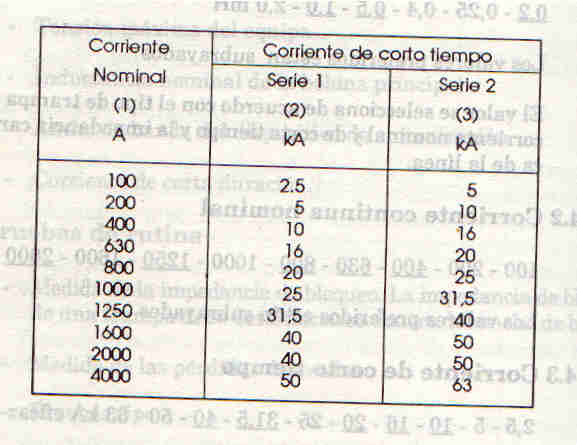 2,5 - 5 - 10 - 16 - 20 - 25 31.5 - 40 - 50 - 63 kA eficaz