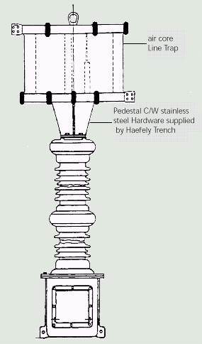 La fuerza de soporte, sumamente alta, de los transformadores de voltaje capacitivos y el arreglo de pedestales montados sobre trampas de onda, permite que la mayoría de trampas de onda sean montadas, directamente, en la parte superior de transformadores de voltaje capacitivo o condensadores de acople.