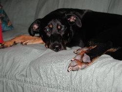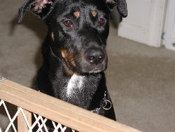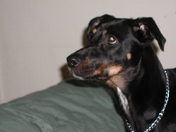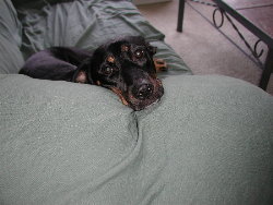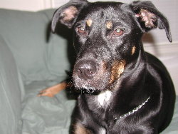 (Otherwise known as Dobe dog, Baby Goo, or Doberman. Besides terrorizing and stalking the cats,