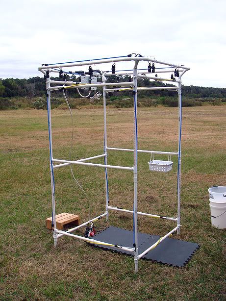 My fredmade camp shower fully assembled (minus the black plastic curtain). For ease of
