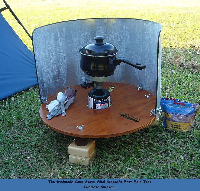 This simple fredmade wind screen was designed to accomodate both of my 1 burner propane camp stoves. The