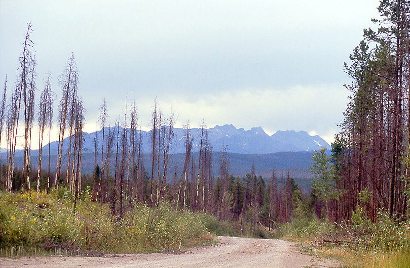 On a dirt & gravel road outside the western boundary of GNP looking eastward into the park