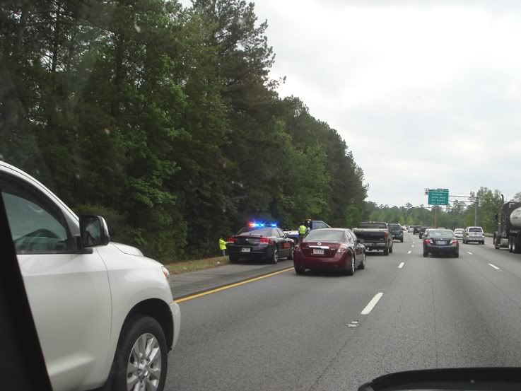 only trouble I saw all day. A sporty looking red sedan had left the road and ended up at the bottom