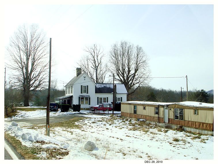 When driving to the cabin via Vein Mountain Rd., you'll need to turn left on Landis Ln. immediately after you pass this house.