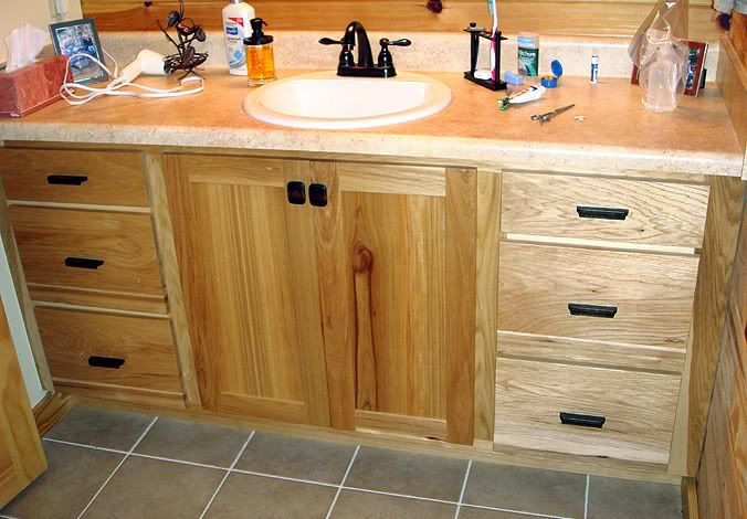 This shows the homemade drawer pulls and cabinet knobs I installed in the master bathroom in October.