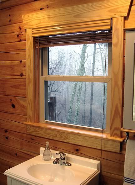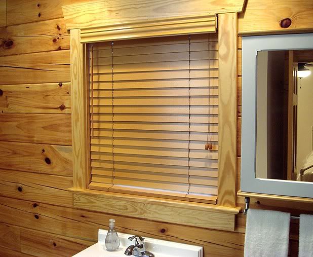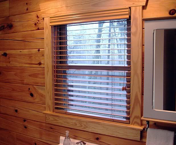New "golden oak" finish wood blinds installed in the guest bathroom