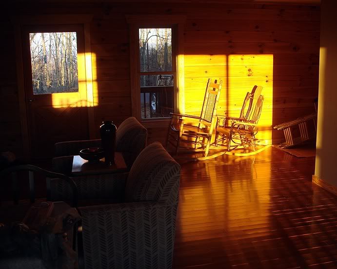 Just after sunrise - golden sunbeams streaming through the rear sliding glass door