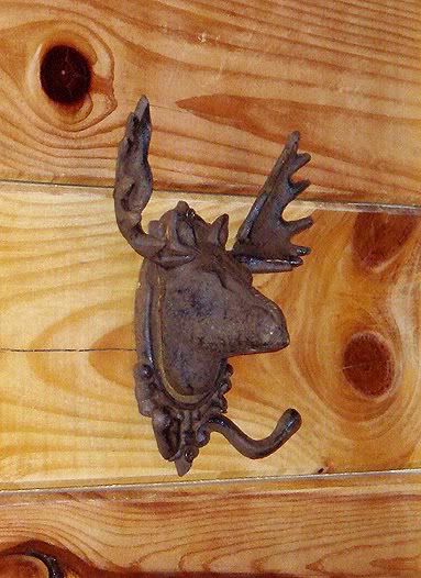 Meet my new little friend, Moose-tafa, the iron moose head coat hook.