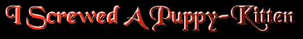 Corey and Joey FINALLY get back home, Joey runs and steals one of Mick's puppy kittens and takes it into his barn. He then takes out the edible undies and puts them on the puppy-kitten. As he reaches for the mini-skirt, the puppy-kitten starts nibbling on the edible undies. Joey starts smacking at the puppy-kitten while he tried to put the mini-skirt on it. When he FINALLY got the skirt on the puppy-kitten, he began pulling the halter top over the puppy-kittens head, but it got stuck on the puppy-kittens snout! Joey had to fag-fight with it for like, five minutes before he finally got the halter top on! Then, he started doing the puppy-kittens make-up!! He began applying bright-whore-red lipstick to the puppy-kittens mouth. He then turns around to get the mascara. When he turns back around...