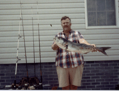 This photo was taken in the fall of '99. I love to do some night fishing for blues off the jetty at Wrightsville Beach. This baby weighed in at 15 pounds.