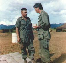 1st Brigade Information Officer Ivan Worrell with Dean Burgess of CBS News at Dak To, Republic of Vietnam during the war.