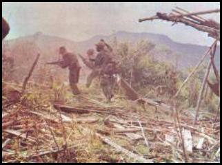 Our commanders called in air strikes, they pounded the enemy throughout the night. "Smokey the Bear" dropped flares, created an eerie light. But it was good enough to see, the ravaged enemy retreat in disharmony. "Puff the Magic Dragon" came in for the kill, laying hot lead all over those hills.