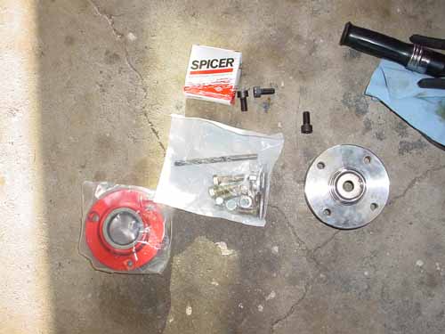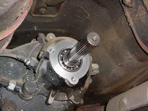 Tap the hole, slip the companion flange onto the tailshaft, and viola!! I used the old tailcone and a BFH to help seat the flange, which was being slightly stubborn.