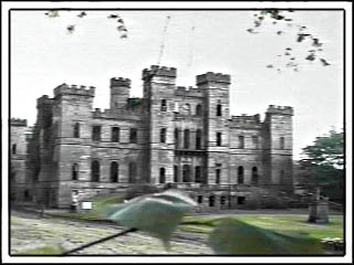 Loudoun Castle in Ayrshire, southwest of Glasgow, is a magnificent but unsafe ruin still in the hands of the family and not open to the public. The original keep or tower is encased in a later baronial palace. The castle was for centuries the seat of the ancestors of the Campbell Earls of Loudoun. Their descendants still own the land.