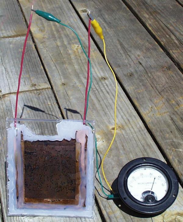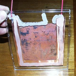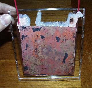 plate. Another insulated copper wire is soldered to one corner of the U.