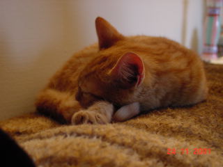 Orange Tabby. I introduced myself to my Mommy on November 24, 2001.