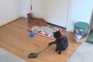 a harness on and to walk on a leash. I finally gave in and now meow to