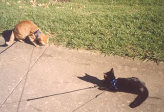 gives in. I learned how to walk on a leash in January 2002. Mommy says I