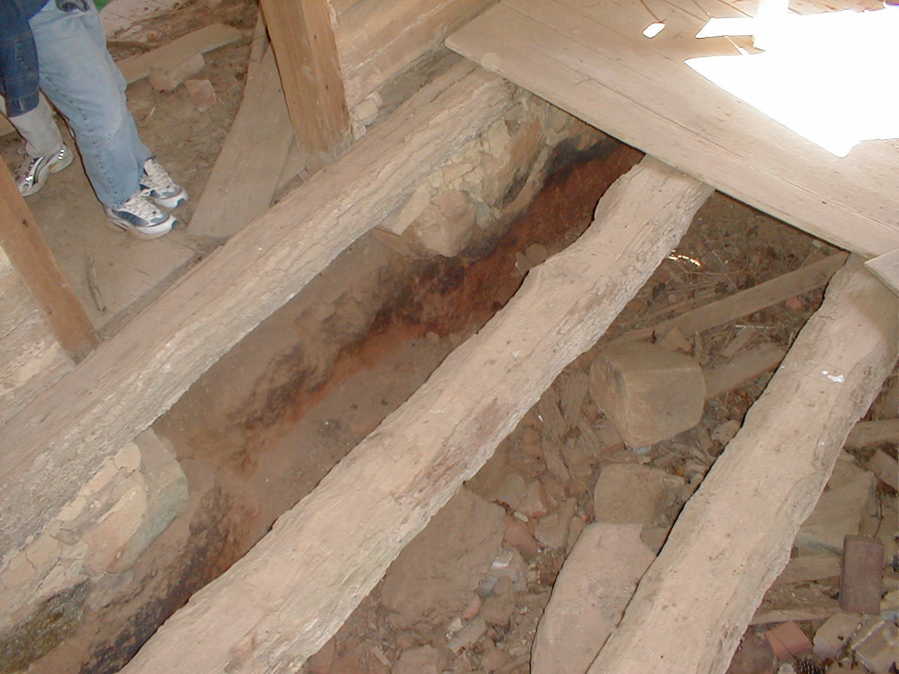Remains of one of the two chimneys in the downstairs portion of the house.The other remains in good condition.