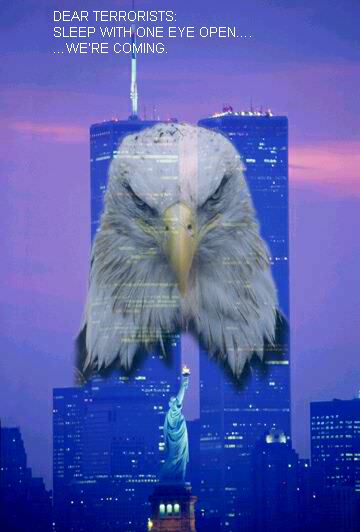 Now I really caution people about the influences of propaganda. This is because it is used to show an aspect of the truth desired by their makers to prevoke a responce in accordance to their wishes by people who view it that are ignorent to the facts that they dont want people to know. This is used mainly during times of war. In most cases the "enemy" is portrayed as some steriotyped face used to dehumaize them and therefore make them easily hated and more inportant easy to kill without massive public outrage. Here is some stuff I have recived in the e-mail that has been circulating. This stuff isn't quite like real propaganda because it contains dark humor in it. You can also listen to this song Day`O while you look at them. Check out this site on www.laugh.com. For those who have access to Works or Word type in QF33NY which stands for questionable flight 33 from New York, highlight it and select wingdings. It will show up as: QF33NY