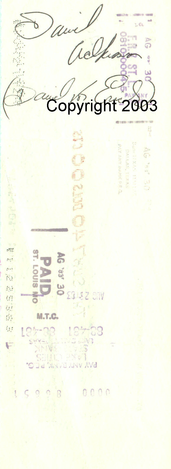 St. Louis Wrestling Club payoff check made payable to David Von Erich. Endorsed by the late David Von Erich in both his ring name and birth name, David Adkisson.