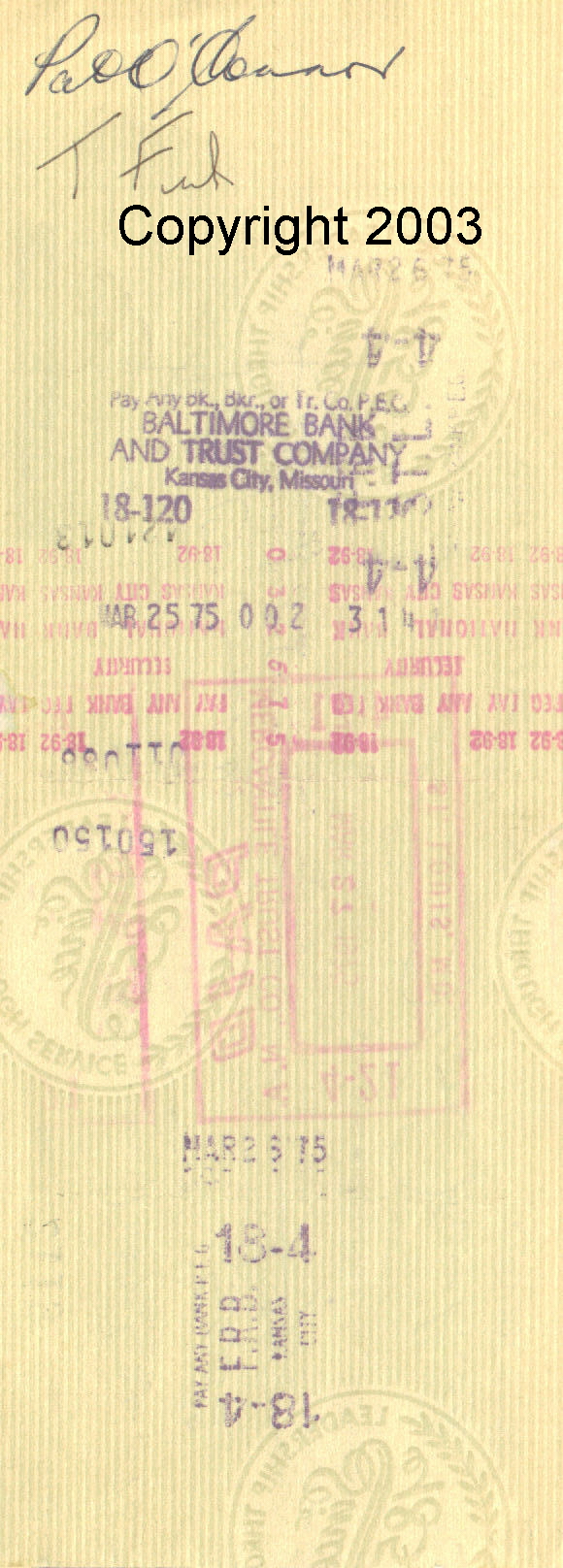 St. Louis Wrestling Club payoff check made payable to Pat O'Connor. Endorsed by O'Connor and former World Champion, Terry Funk.