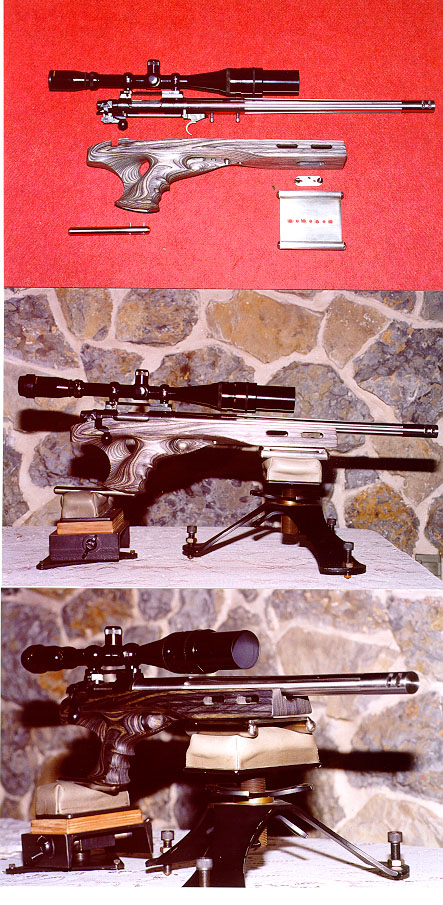 Scope: Tasco 8X32X44 rear base shimmed .015 to have scope adjustment at 800 metres.